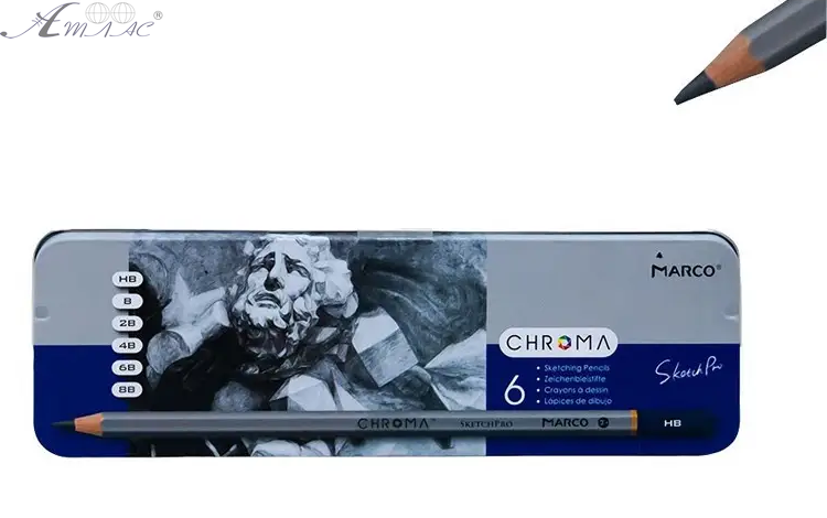 Олівці графітові набір Marсо 6шт Н-8В Chroma в металевому пеналі 8015-6TN