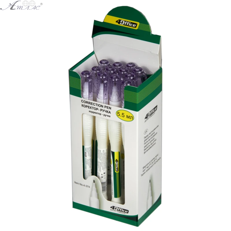 Коректор-ручка 4Office відмінно підходить для видалення всіх видів чорнила. Металевий наконечник дозволяє робити точні виправлення тонких ліній. Від ступеня натискання наконечника на папір залежить витрата рідини. Корпус ручки зручно розташовується у руці. Коректор швидко сохне на папері і має хороші властивості, що криють. Об'єм 5,5 мл. Фактичний відтінок товару може відрізнятись від зображеного на фото.