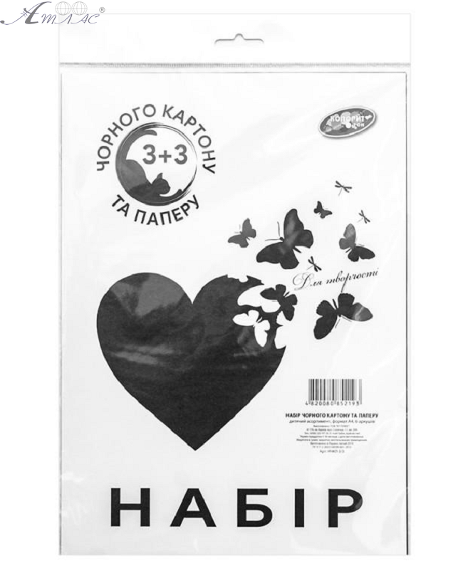 Набір Картон + папір ЧОРНІ 3 + 3 листи НЧКП-3/3, 07662