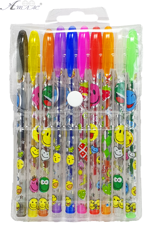 Ручка гелева набір Смайл з блискітками 10 кольорів 00372