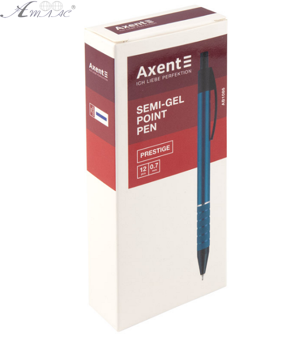Автоматична кулькова ручка високої якості Axent Prestige. Металевий круглий корпус синього кольору. Зручна область захоплення з рельєфними ділянками знижує втому руки під час письма. Фактичний відтінок товару може відрізнятись від зображеного на фото.