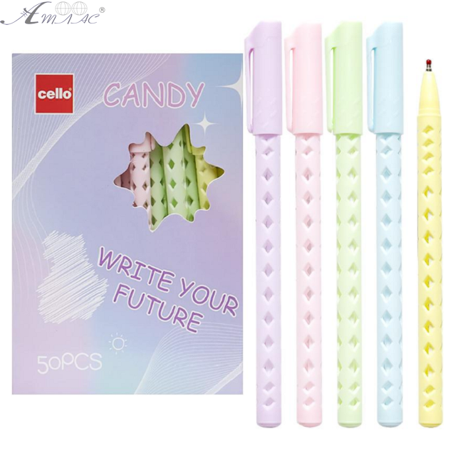Ручка кулькова Cello Candy. Дуже ніжного пастельного кольору пластиковий корпус. Чорнило синє на олійній основі. Товщина лінії 0,5мм. Фактичний відтінок товару може відрізнятись від зображеного на фото.